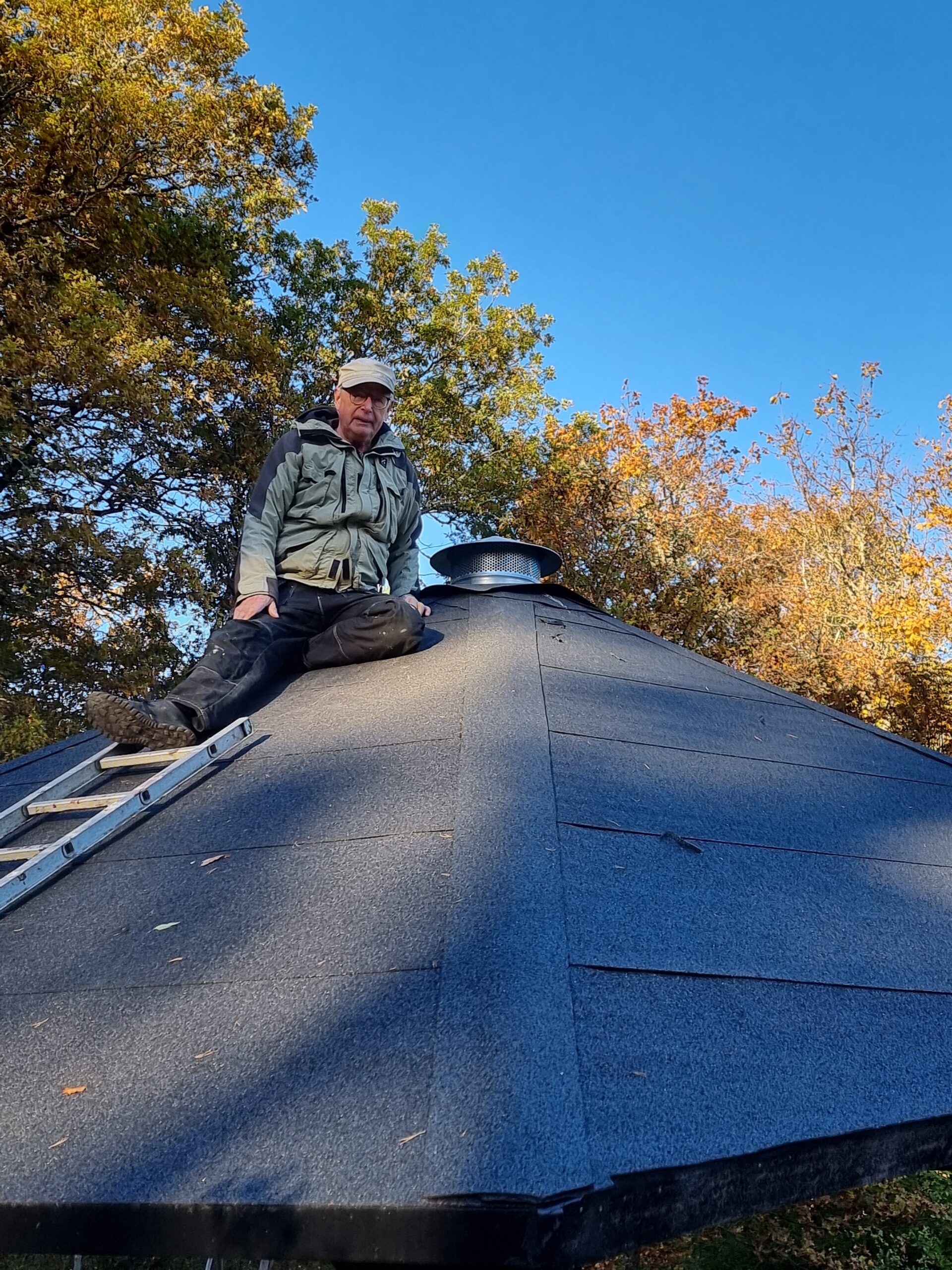 Ulf och jag, ordnade så att takhuven kom på plats (17/10-25)