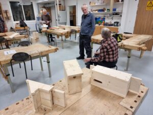 Naturskyddsföreningen anordnade en holkbyggar kväll. Ett antal småfågel, Tornseglare och fladdermus holkar snickrades ihop under kvällen
