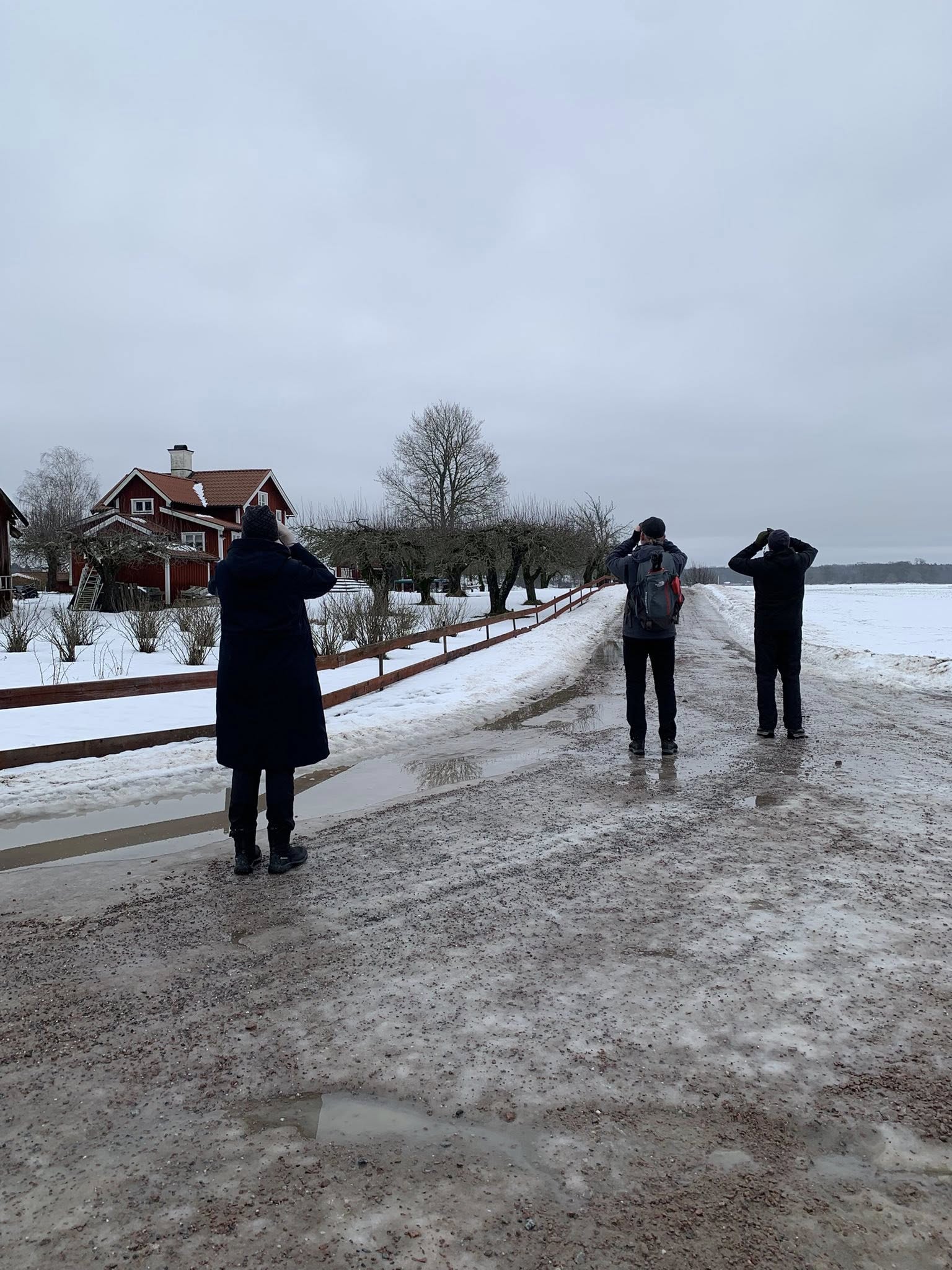 Vi var 10 personer som vandrade kring Strömsholms slott och dess fina omgivning. Vi beskådade Strömstare, Knipor, Gräsänder och en massa gäss samt några andra fågelarter. Pausade och intog glögg och pepparkakor i ett vackert soligt vinterväder, men brist på snö som troligen kommer att falla i morgon 1 januari 2026