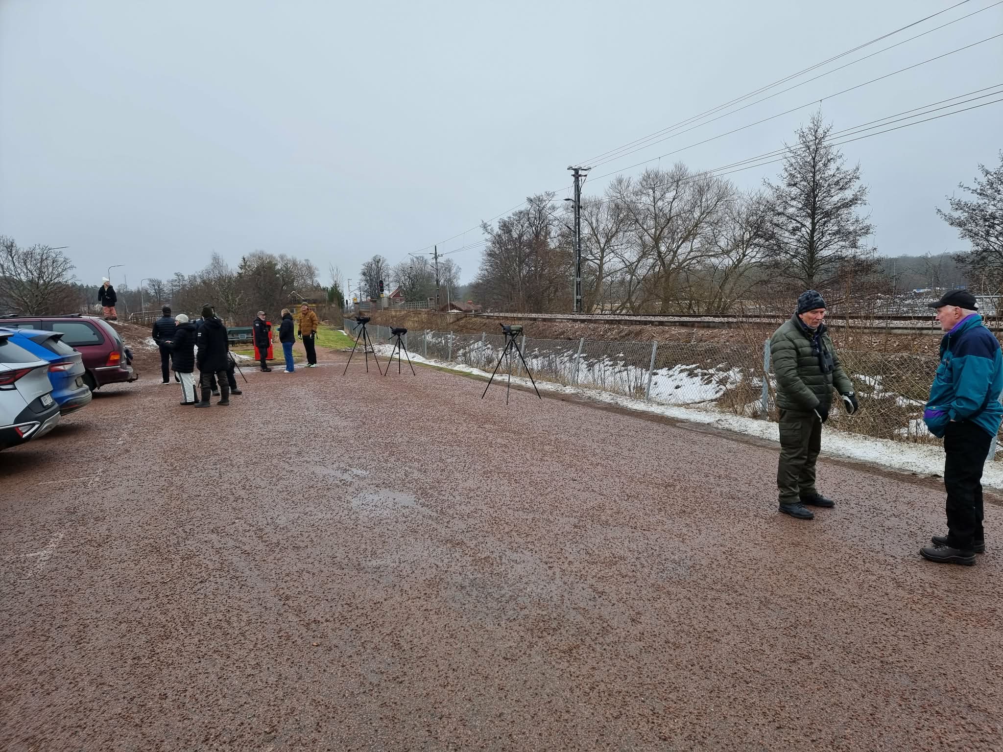 Ugglesafari i skogarna norr om Kolsva 2025-03-22   En trevlig utflykt i Färna Ekoparks skogar, där vi lyssnade efter ugglor, guidade av Perka och Lena. Sparvuggla såg vi på nära håll. Slaguggla och Pärluggla hördes på flera ställen längs vägen. Kvällens märkligaste observation var nog ”lys-masken” som i ett pärlband kom glidande över stjärnhimlen (enligt media, satelliter från SpaceX:s Starshield-program)